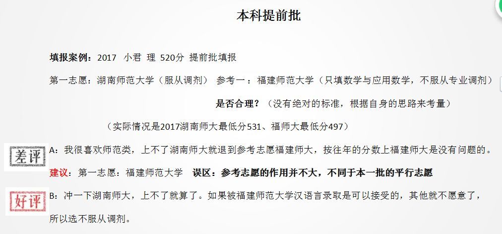 建议大家:首先要衡量,在提前批次录取的这些特定类型的院校和专业是否确实是自己比较感兴趣和意向很大的,特别是一些仅在提前批次招生的院校及专业类型,如果确实是比较适合自己的,可以积极填报。例如,近年师范类一直是填报热门,如果考生倾向师范类专业,一定要在提前批次填报!师范类院校在本一及本二批次投放的招生计划是除非注明是师范类专业,否则都是非师范类的专业!